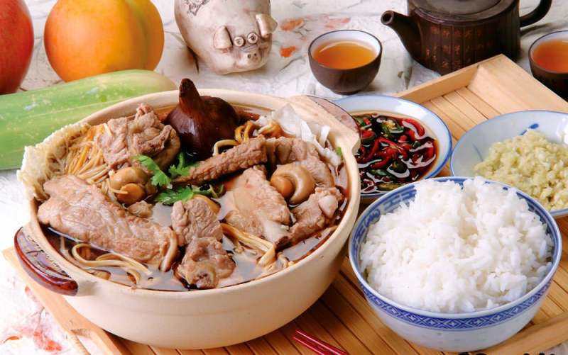 اسم این غذا را اگر کلمه به کلمه ترجمه کنیم به معنای «گوشت، استخوان چای» است. اما هیچ نوع چای در تهیهی این سوپ رایج و محبوب استفاده نمیشود. در عوض، مواد غذایی اصلی تهیهی این غذا عبارتاند از قطعات گوشت، قارچ، سیر، توفو و انواع سبزیجات معطر. این ترکیب را بعد از پختن همراه با نودل یا برنج مصرف میکنند. این سوپ معطر، غذایی سیرکننده و کامل مناسب برای شبهای بلند و روزهای سرد است.