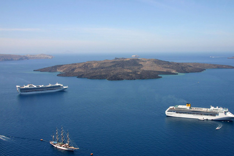 یکی از بهترین کارهایی که در سفر به سانتورینی می‌توان انجام داد، بازدید از آتشفشان سانتورینی است. حدود ۳۶۰۰ سال پیش انفجار آتشفشانی عظیمی رخ داد که این کالدرا (فرورفتگی آتشفشانی دیگ مانند) را از خود به یادگار گذاشت. این آتشفشان ۱۲ در ۷ کیلومتری، هنوز هم فعال است. در وسط این کالدرا همچنین دو جزیره‌ی کوچک Kaiméni قرار دارد که از ویژگی‌های آن می‌توان به خروج گاز و چشمه‌های آب گرم اشاره کرد. آژانس‌های مختلفی وجود دارند که فرصت یک روز گشت و گذار در کالدرا و حمام در چشمه‌های آب گرم به علاوه‌ی میل کردن ناهار در Thirassia را در اختیار همگان می‌گذارند. همچنین یک جزیره‌ی کوچک در سمت غربی کالدرا مناظری بسیار زیبا را پیش روی شما قرار می‌دهد که هنگام بازگشت به سانتورینی می‌توانید از تماشای آن‌ها لذت ببرید.