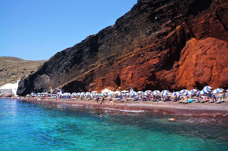 نزدیک روستای آکروتیری (Akrotíri) در ۱۲ کیلومتری جنوب غربی فیرا، سکونتگاه باستانی آکروتیری زیر گدازه‌های خارج شده در قرن ۱۶ قبل از میلاد سوزانده شد. حفاری‌ها شنان داده‌اند سانتورینی قبل از این انفجار آتشفشانی منطقه‌ای پر رونق و مرفه بود و احتمالا مردم آن از طریق کشتیرانی و تجارت گذران زندگی می‌کردند. ارتباط این جزیره با شمال آفریقا را می‌توان از طریق نقش برجسته‌هایی نتیجه گرفت که خانه‌ها را با آن تزئین کرده‌اند. (اغلب این نقش برجسته‌ها امروزه در موزه باستان‌شناسی ملی در آتن قرار دارند). به هر حال آکروتیری پس از چند سال بسته بودن، به صورت عمومی در سال ۲۰۱۲ بازگشایی شد. خرابه‌های به جا مانده شدیدا محافظت می‌شود. خیابان‌ها، بناها، پله کان‌ها و حتی طبقه‌ی دوم ساختمان‌ها هم هنوز قابل مشاهده‌اند.  در نزدیکی این مکان نیز می‌توان ساحل سرخ را زیر یک دیوار سنگی قرمز رنگ پیدا کرد که زیبایی آن هر بازدیدکننده‌ای را به تحسین وا می‌دارد. اگر روزی به سانتورینی سفر کردید، به هیچ وجه بازدید از این مکان را فراموش نکنید.