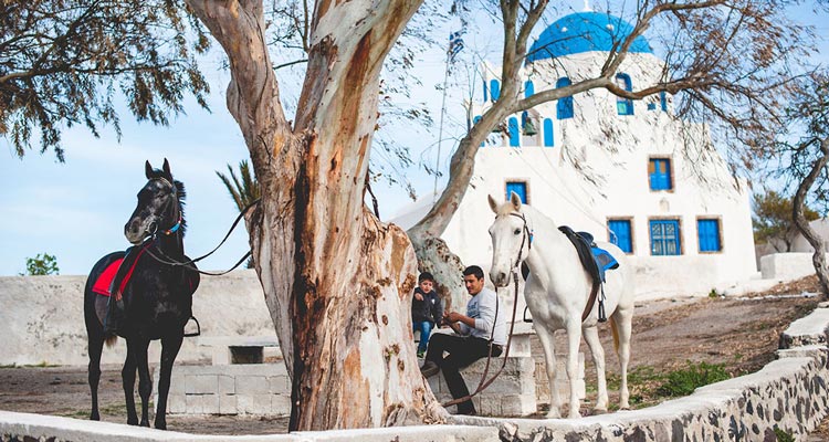 اسب سواری یکی از محبوب‌ترین تفریحاتی است که می‌توانید در سراسر سانتورینی پیدا کنید. چه با خانواده باشید یا دوستان، چه سفر ماه عسلی باشد یا نه، در هر صورت لذت زیادی از انجام این ورزش جذاب خواهید برد. می‌توانید سوار بر اسب در اطراف تپه‌های جزیره یا در طول ساحل به گشت و گذار بپردازید. این کار برای فعالیت بعد از ظهرتان مناسب است. حتی اگر به اسب هم علاقه‌ای ندارید، الاغ سواری گزینه‌ی جذاب دیگری است که در اختیار شما خواهد بود.