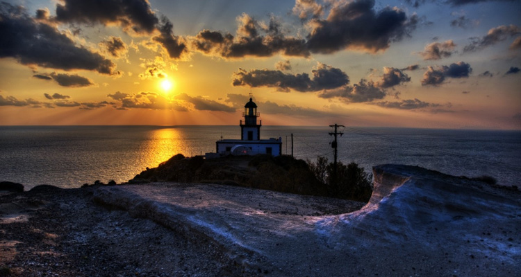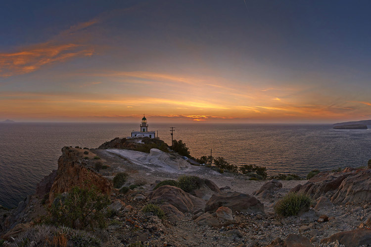 واقع در دماغه‌ی جنوبی سانتورینی و نزدیک به خرابه‌های آکروتیری می‌توانید یک فانوس دریایی زیبا مشاهده کنید. این فانوس مورد استفاده‌ی نیروی دریایی یونان قرار می‌گیرد. این موضوع بدین معنی است که شما حق ورود به آن را ندارید. اما این دلیل نمی‌شود تا از تماشای آن و فرصت گرفتن عکس‌های یادگاری چشم پوشی کنیم.