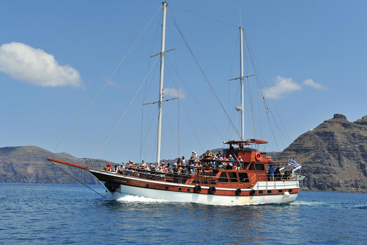 اگر به ماجرجویی علاقه دارید، خواهید دید که با بیرون آمدن از شهرهای کوچک سانتورینی، موارد زیاد و جذابی در انتظار شما خواهد بود. یکی از بهترین تفریحاتی که می‌توانید انجام دهید گشت و گذار روی یک قایق است. در خلیج Ammoudi  می‌توانید در تورهایی سوار بر قایق شوید. در طی این تورها از آتشفشانجزیره، چشمه‌های آب گرم و از محله‌ی جزیره‌ای Thirassia بازدید کنید. با وجود اینکه این تورها چند ساعت به طول می‌انجامد، اما اساسا باید به چشم سفری روزانه به آن‌ها نگاه کرد. البته متاسفانه ناهار شامل این تورها نمی‌شود، اما گروه معمولا در کافه کاپیتان جک برای ناهار توقف می‌کند.