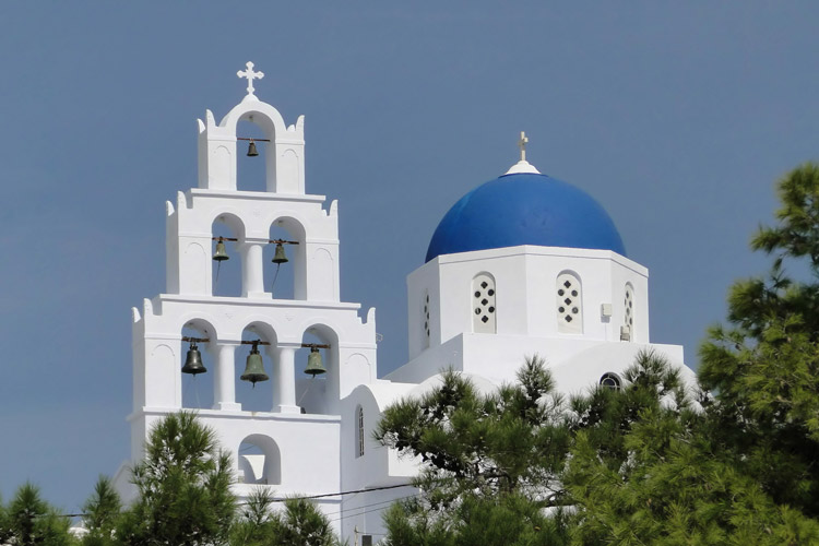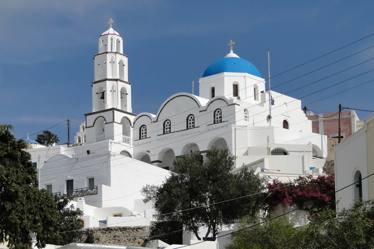 نوبتی هم که باشد نوبت پایتخت سانتورینی است. فیرا یا ثرا در واقع مجموعه‌ای از خانه‌های مکعبی سفیدکاری شده و تراس‌های زیبا، کوچه‌های مارپیچ، میدان‌های کوچک و کلیساهای گنبد آبی در روی صخره‌های ۳۰۰ متری بر بالای کالدرا است که نباید بازدید از آن را از دست داد. به طور کلی مردم این ناحیه از طریق گردشگری گذران زندگی می‌کنند. از همین رو بسیاری از ساختمان‌های آن به هتل‌های کوچک، آپارتمان‌، رستوران، کافه، فروشگاه سوغاتی و جواهرفروشی تبدیل شده‌اند.