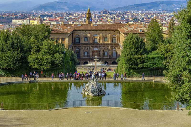 «پلازا پیتی» (Palazzo Pitti)، کاخی بزرگ متعلق به قرن ۱۵ میلادی در جوار رودخانه آرنو است. این کاخ تا سال ۱۹۱۹، محل اقامت حاکمان فلورانس بوده است و بعد از تحویل آن به دولت ایتالیا، به موزه تبدیل شد. اگرچه کاخ پیتی از محل اقامت سلطنتی به یک ساختمان دولتی تغییر کاربری داده است، با این حال در یکی از بلندترین نقاط فلورانس قرار دارد و هنوز حال و هوای یک مجموعهی خصوصی در خانهای بزرگ را تداعی میکند و منظره شهر از این کاخ بسیار تماشایی است.