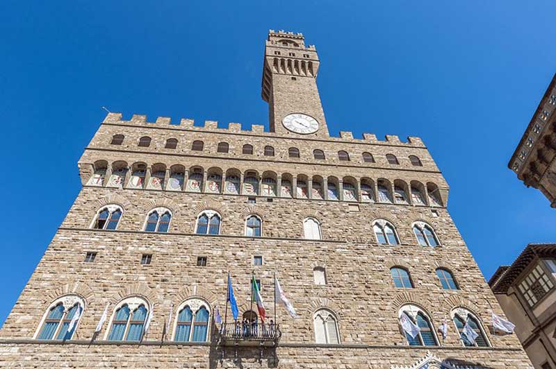 کاخ بزرگ وکیو، مشرف بر میدان سینیوریا و یکی از برجستهترین ساختمانهای فلورانس است. «کاخ وکیو» (Palazzo Vecchio) در قرن ۱۲ میلادی ساخته شد و به مدت شش قرن متعلق به خانواده قدرتمند مدیچی و همچنین بزرگترین حکومت فلورانس بوده است. از سال ۱۸۷۲، این کاخ به عنوان موزه و سالن شهر مورد استفاده قرار گرفته است. مجموعهای از مصنوعات و آثار هنری از جمله نقاشیها، مجسمهها، نقاشیهای دیواری، حکاکیها و پردههای نقش دار فوقالعاده زیبایی در کاخ باشکوه وکیو وجود دارد که میتوان نشانی از رویدادهای تاریخی و مذهبی را در آنها دید.